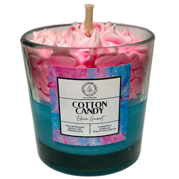 🍬 Cotton Candy – Fragancia: algodón de azúcar con notas dulces y frutales. Decorada con remolinos de colores pastel que recuerdan las nubes de algodón de azúcar.